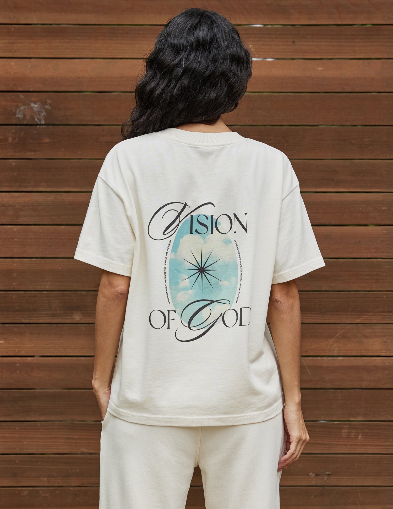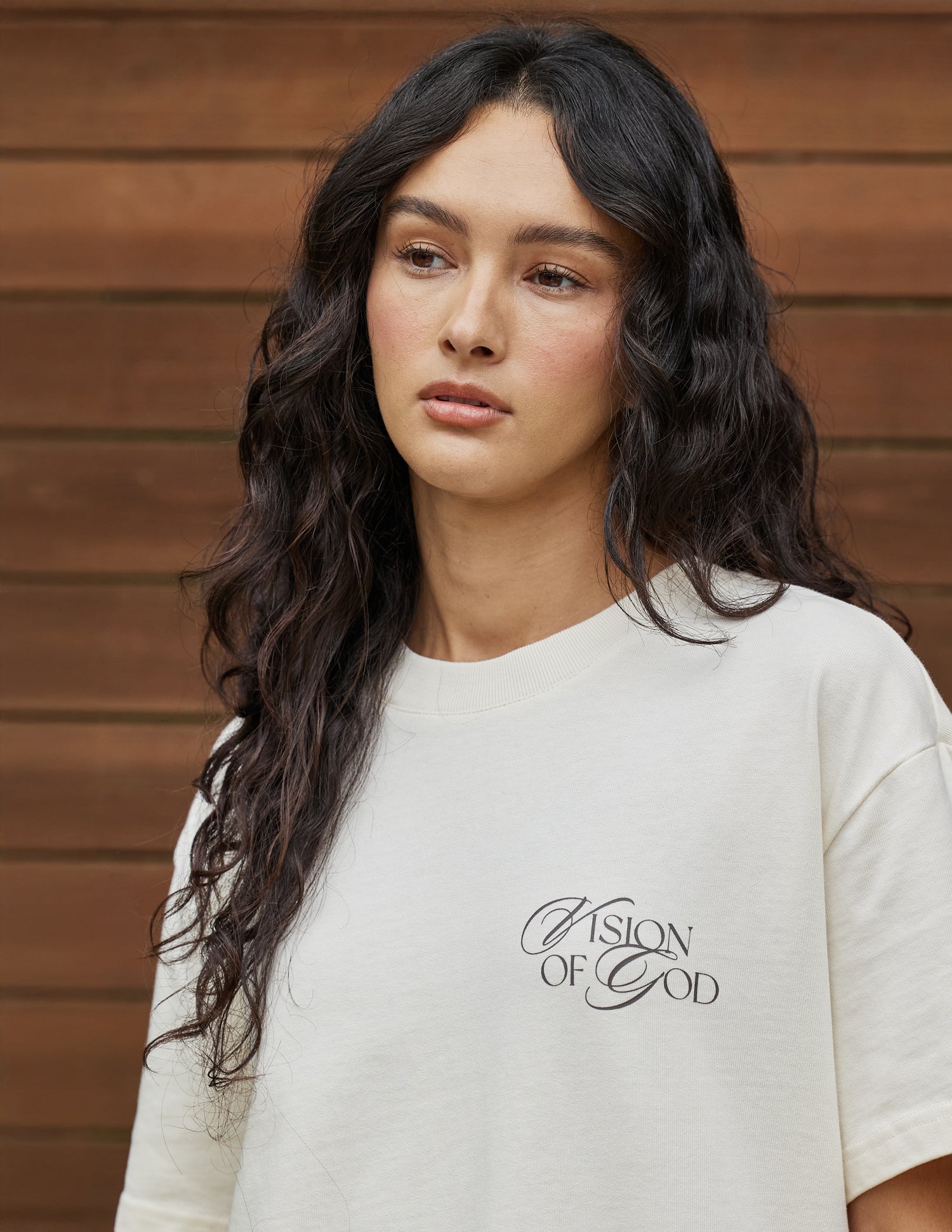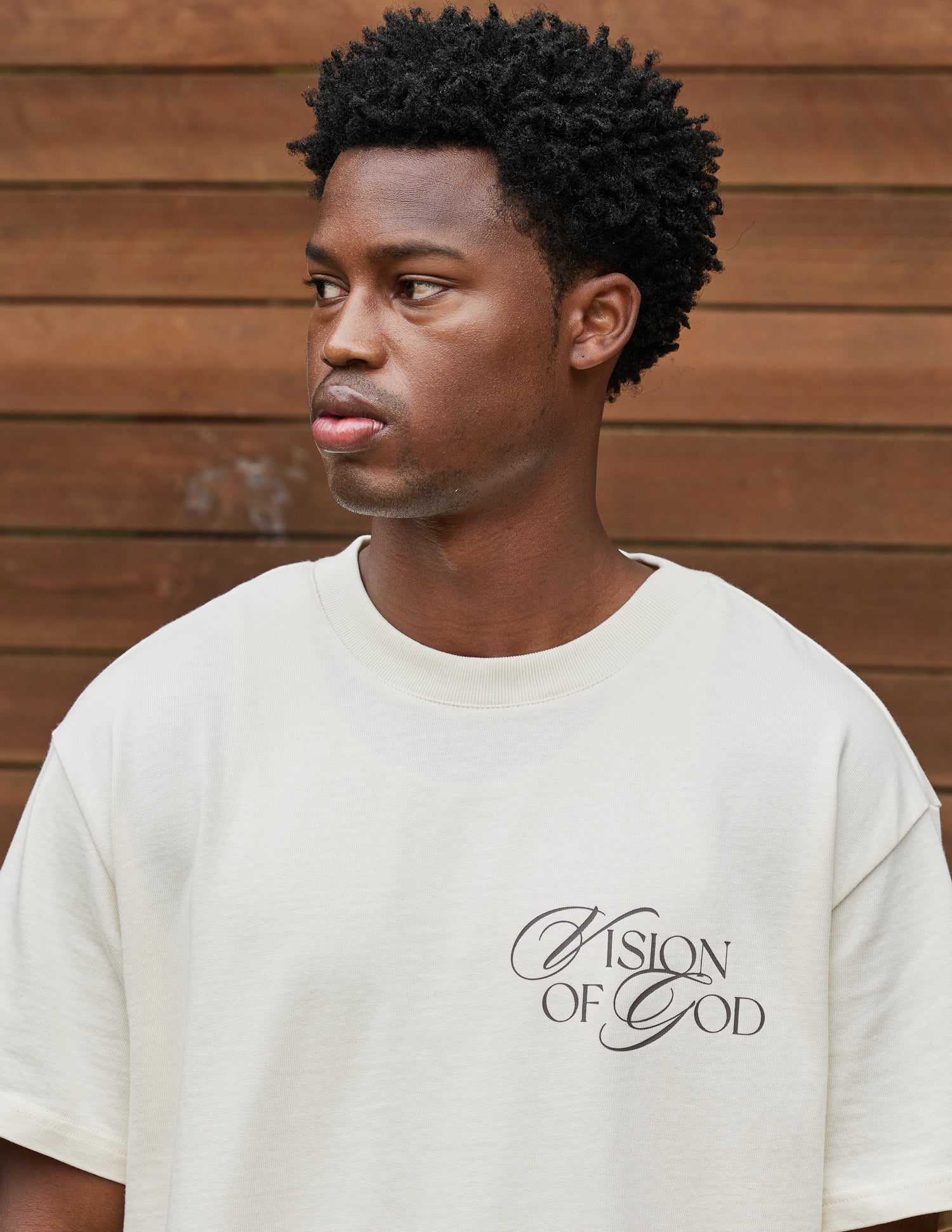 Our Vision Heavyweight Tee in pearl. 100% premium combed cotton. 350gsm. Vision front and back print. An everyday essential.