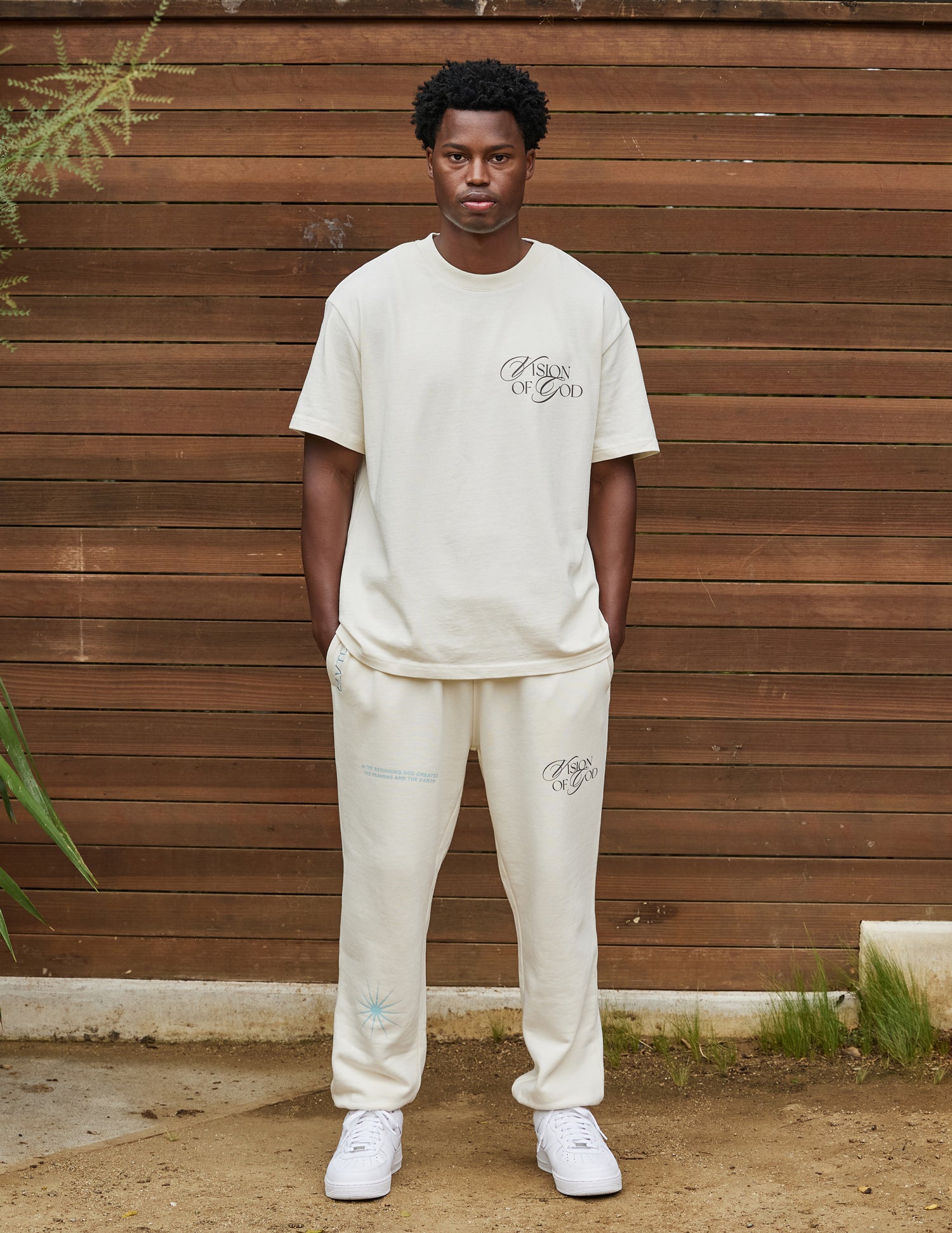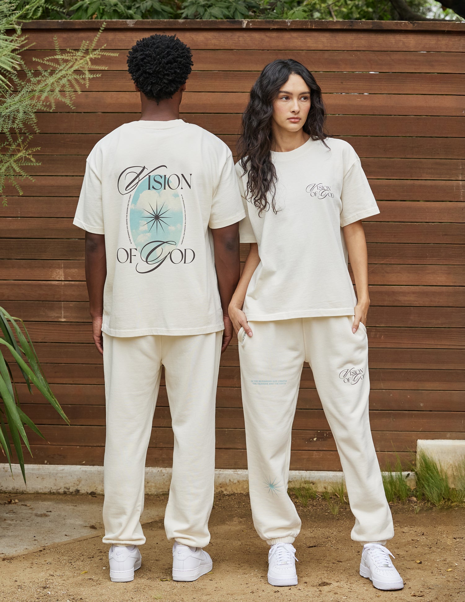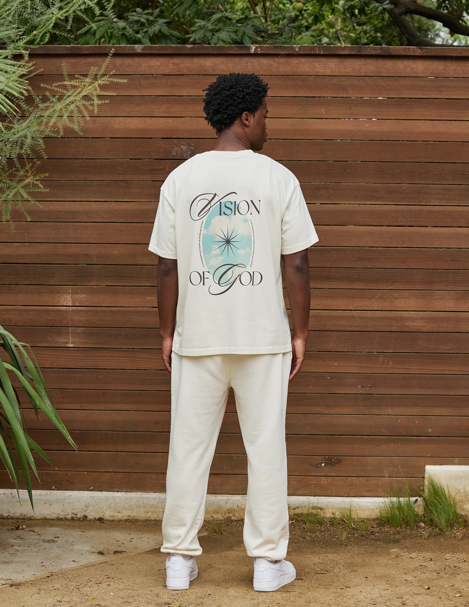 Our Vision Heavyweight Tee in pearl. 100% premium combed cotton. 350gsm. Vision front and back print. An everyday essential.