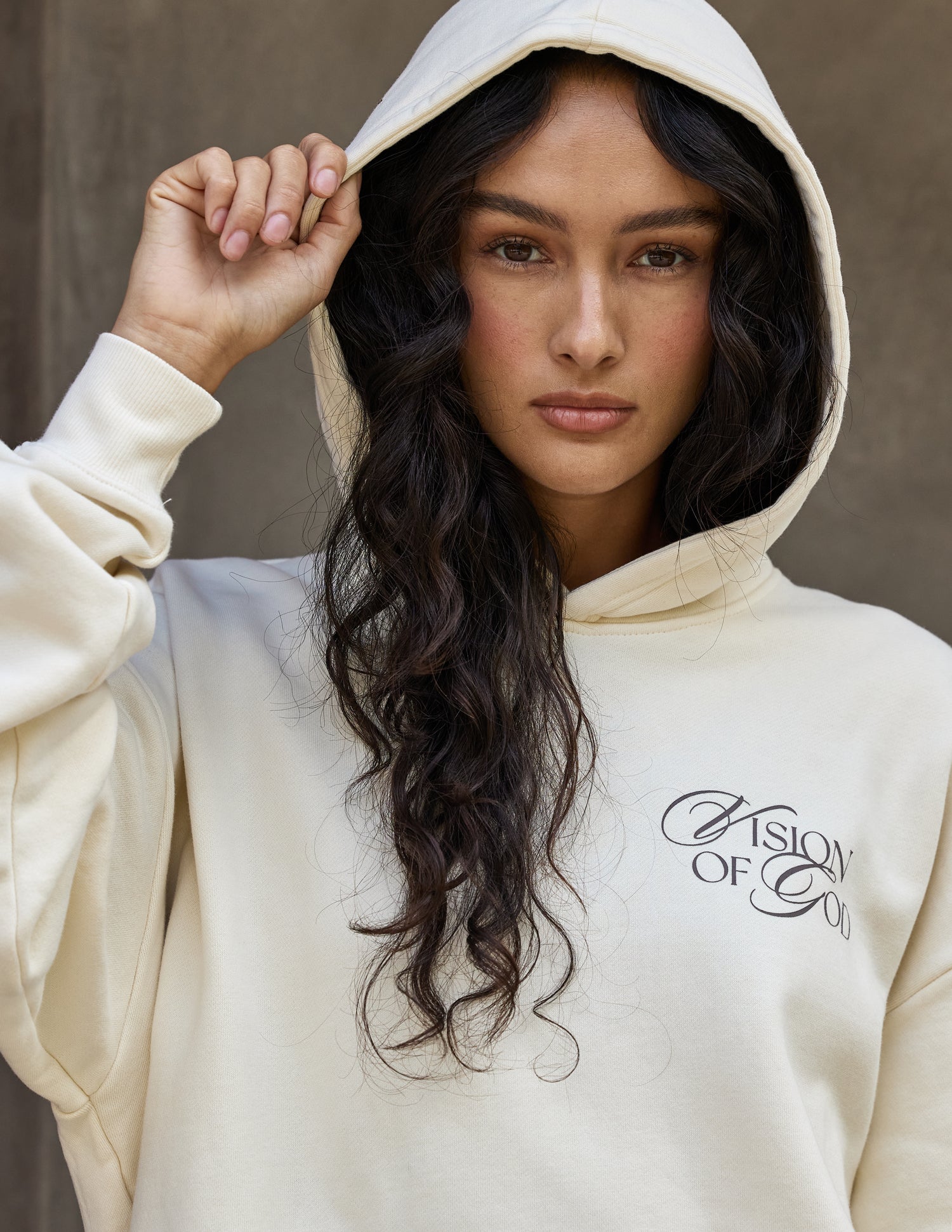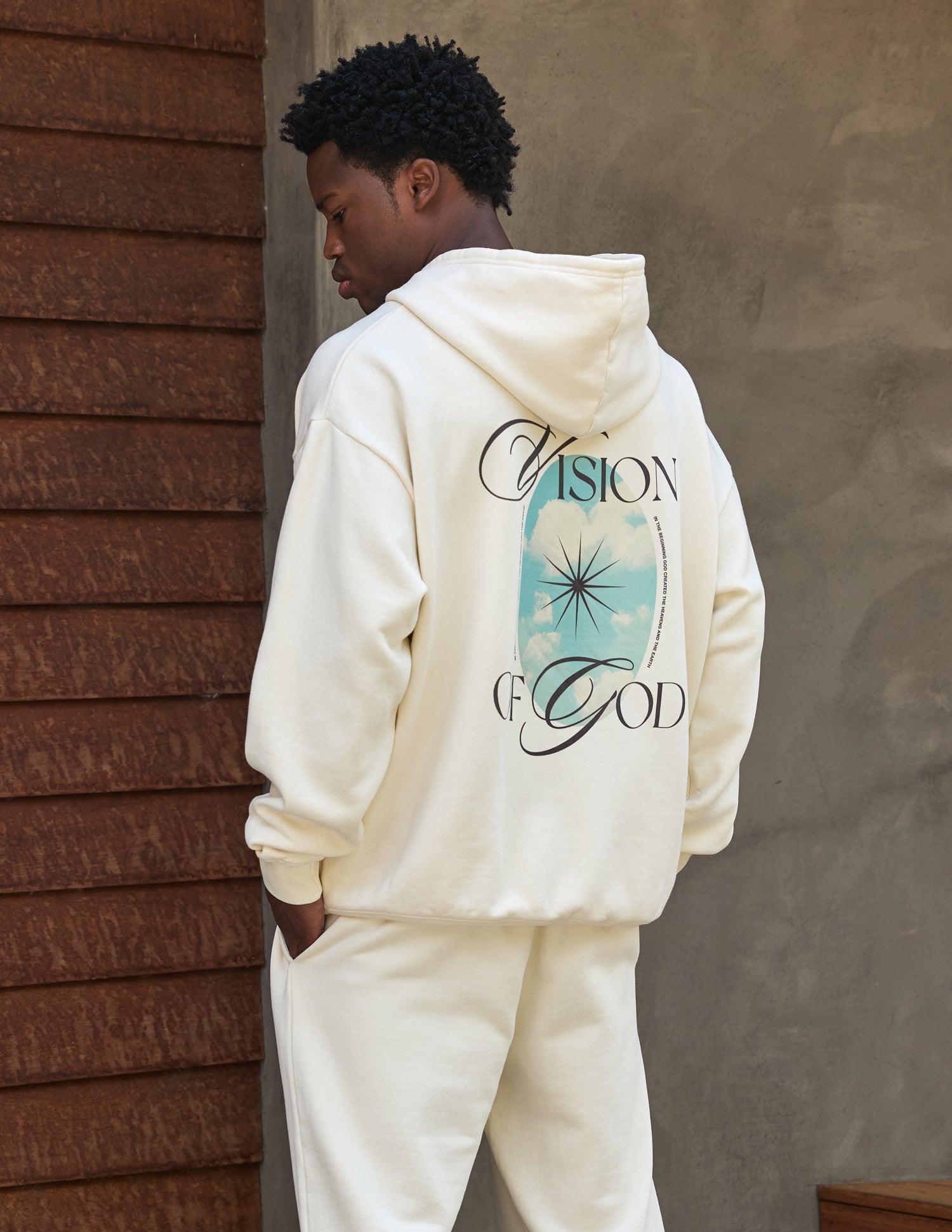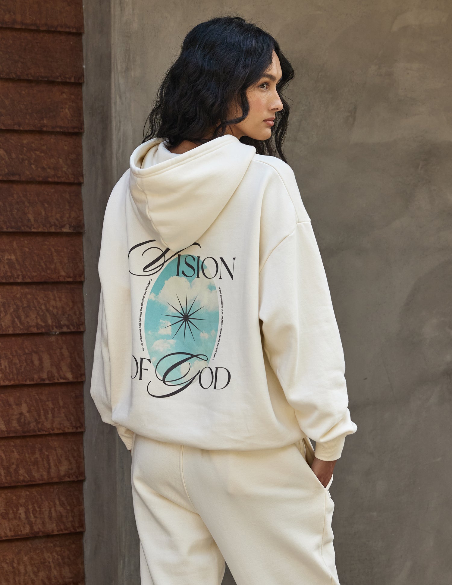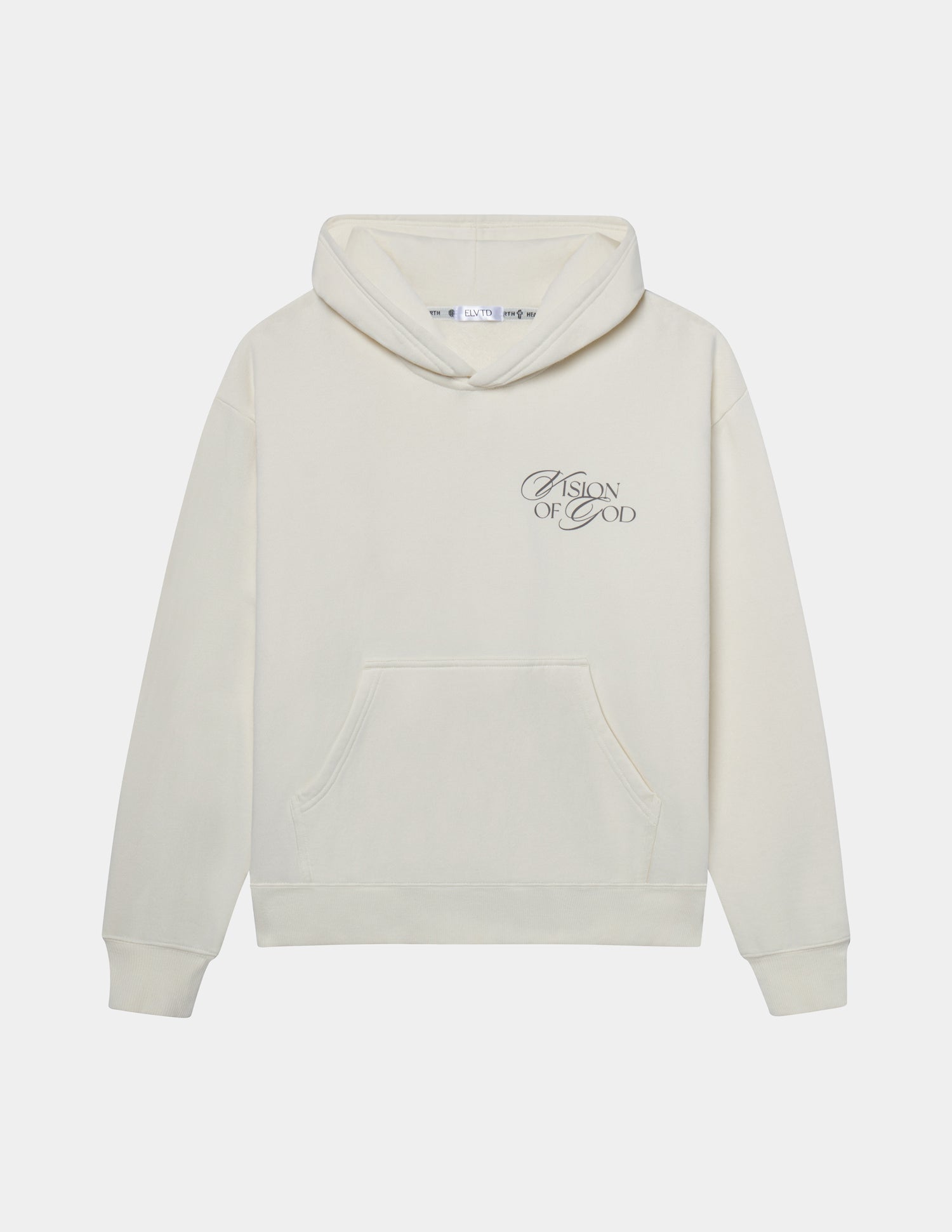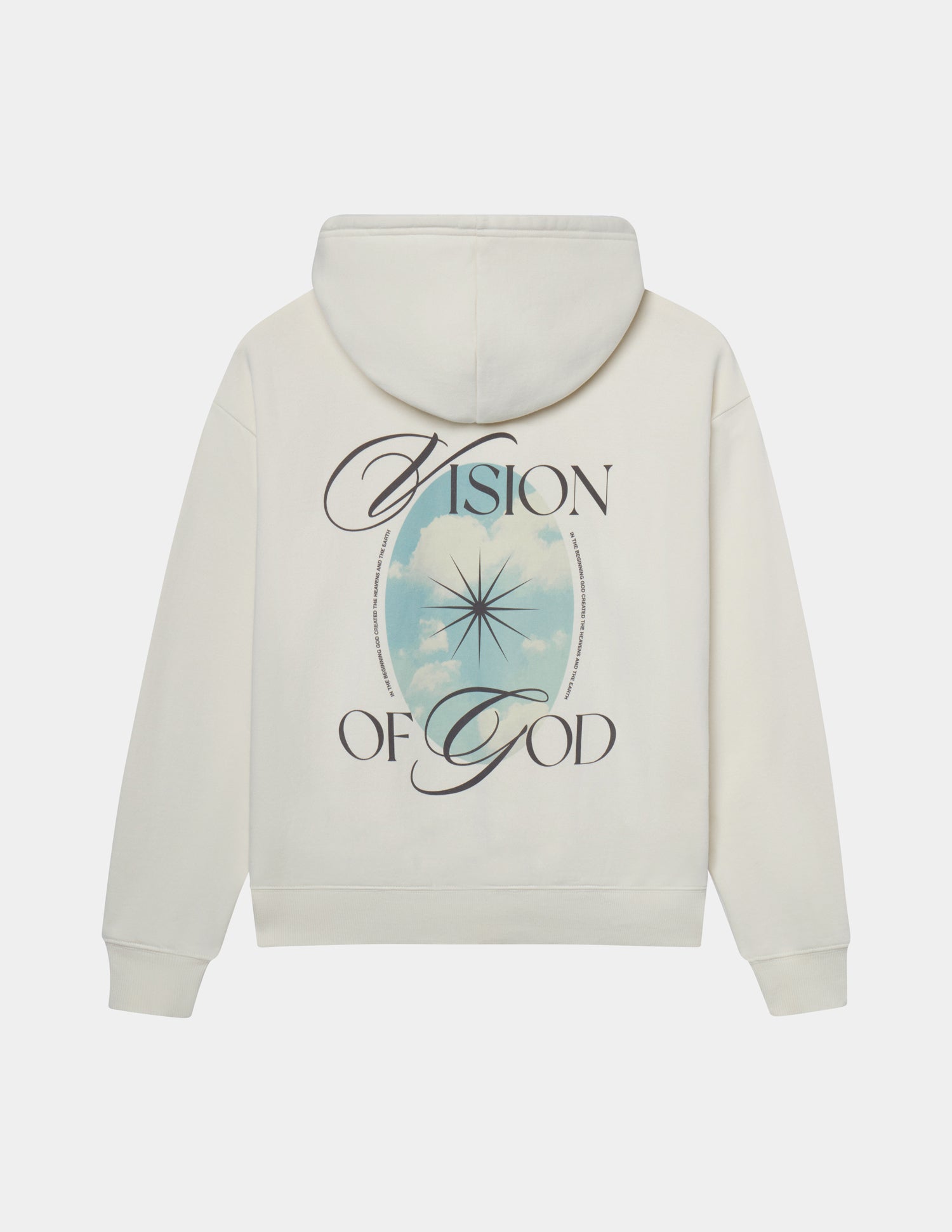 Our Vision Hoodie in pearl. 100% premium combed cotton. 420gsm. Vision front and back print.