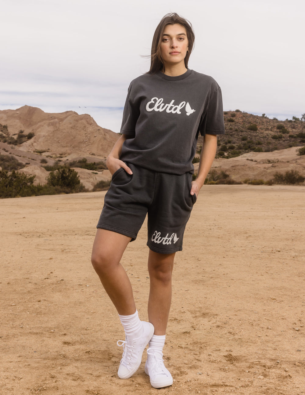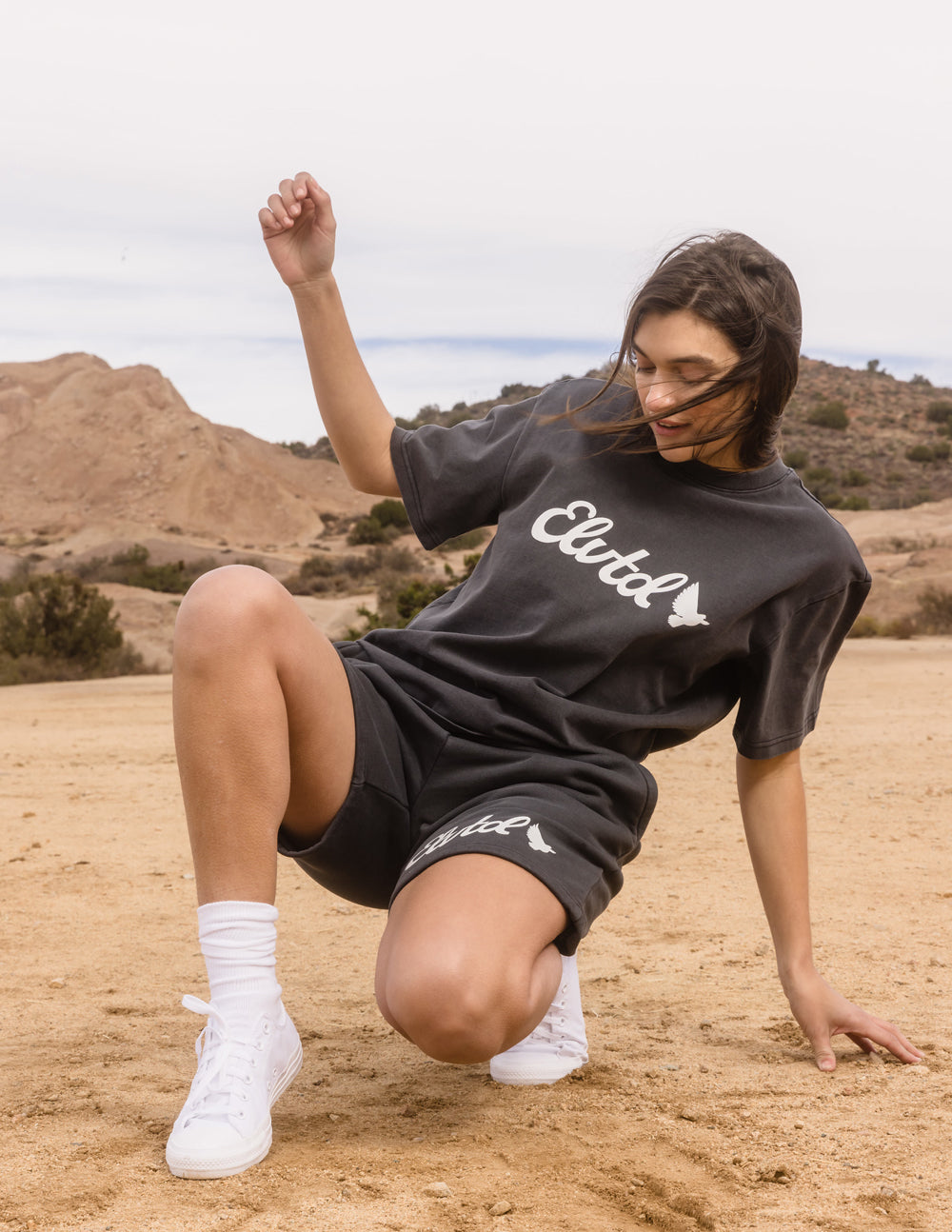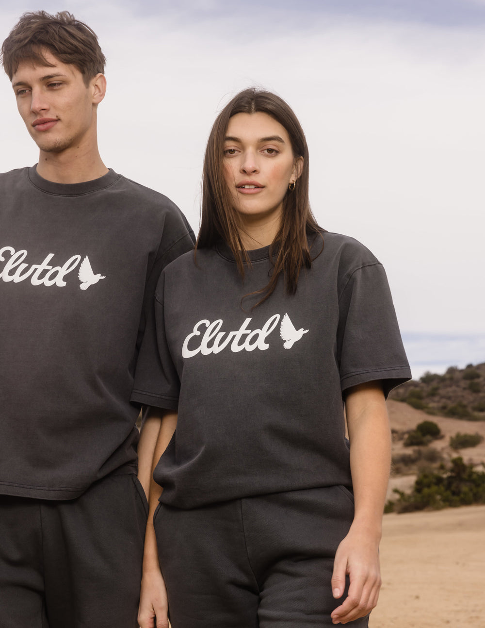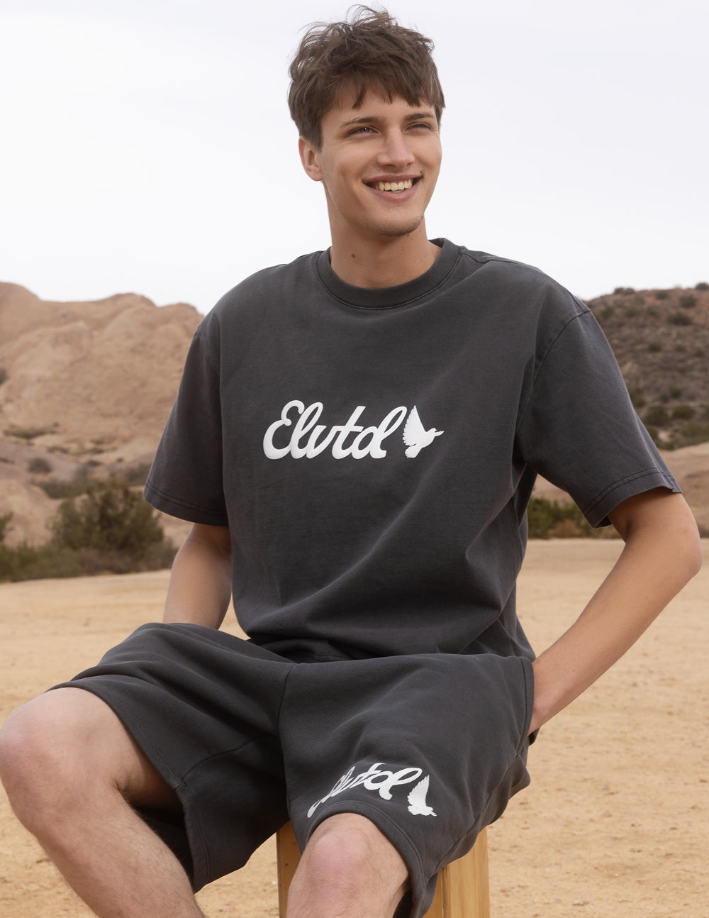 Our Cursive Logo Heavyweight Tee in vintage black. 100% premium combed cotton. 350gsm. Cursive ELVTD logo front puff print. An everyday essential.
