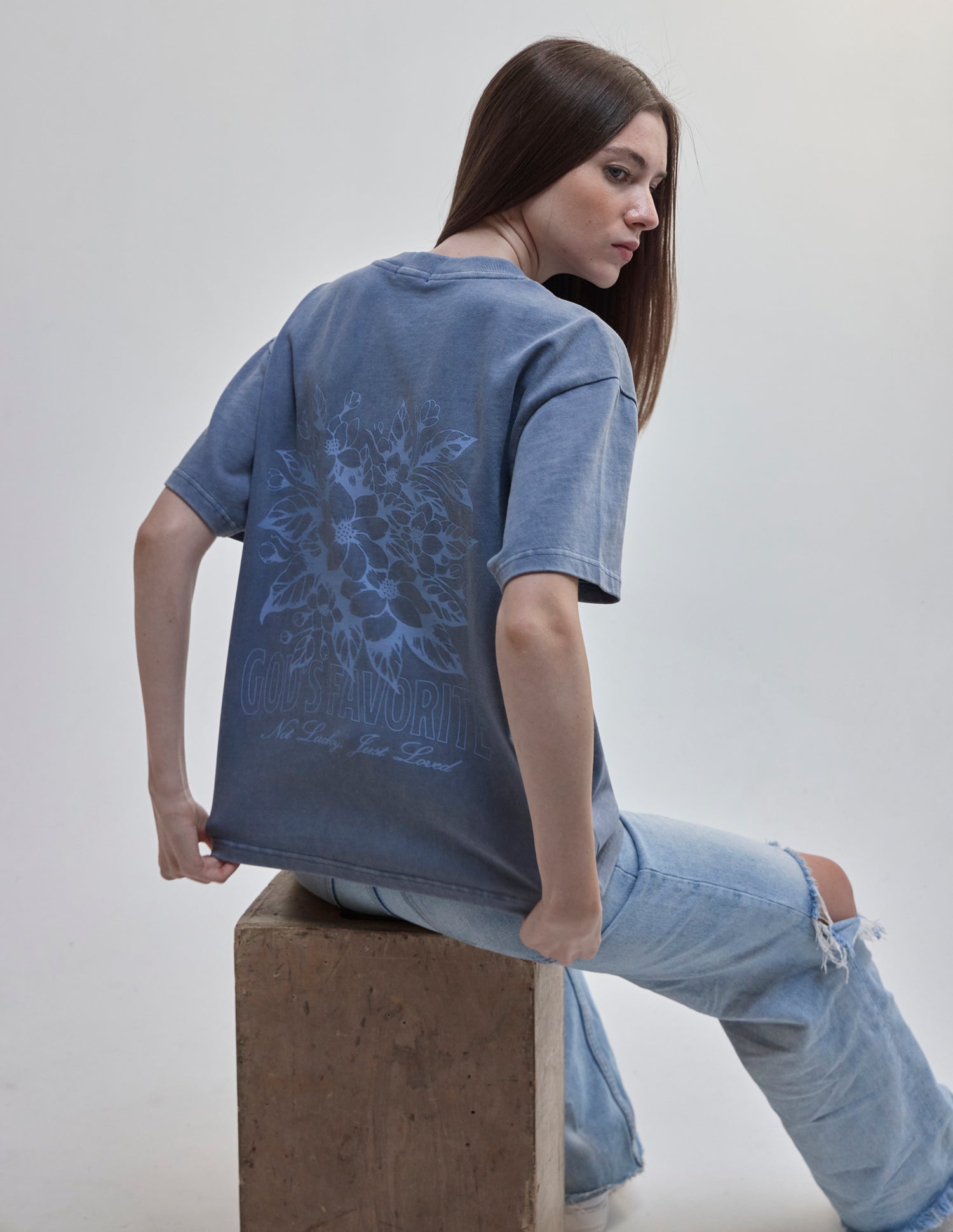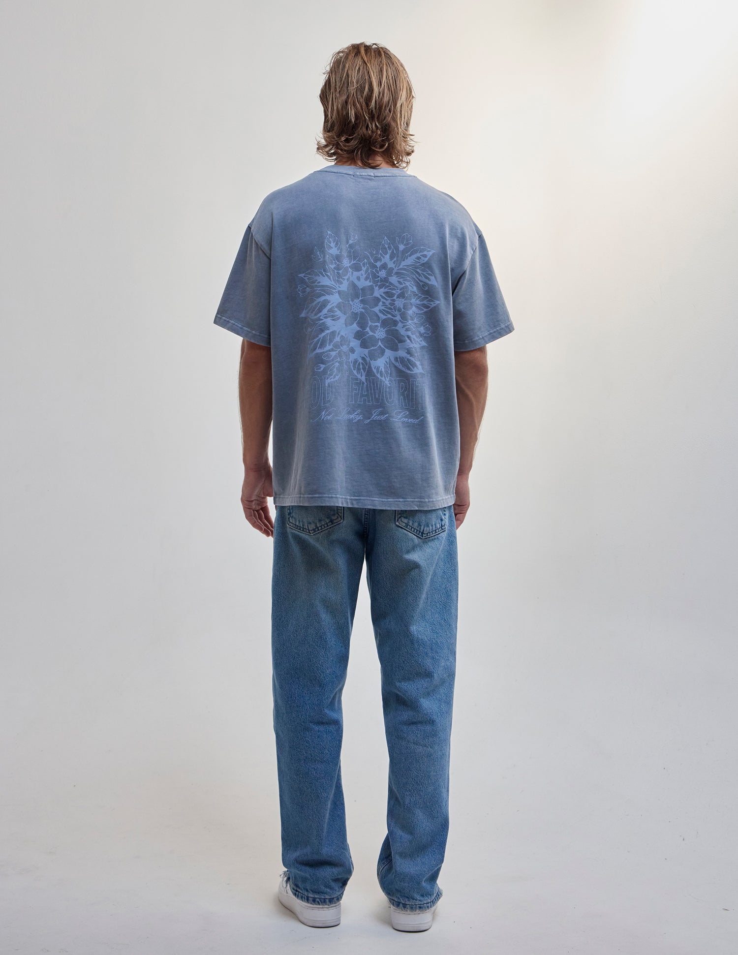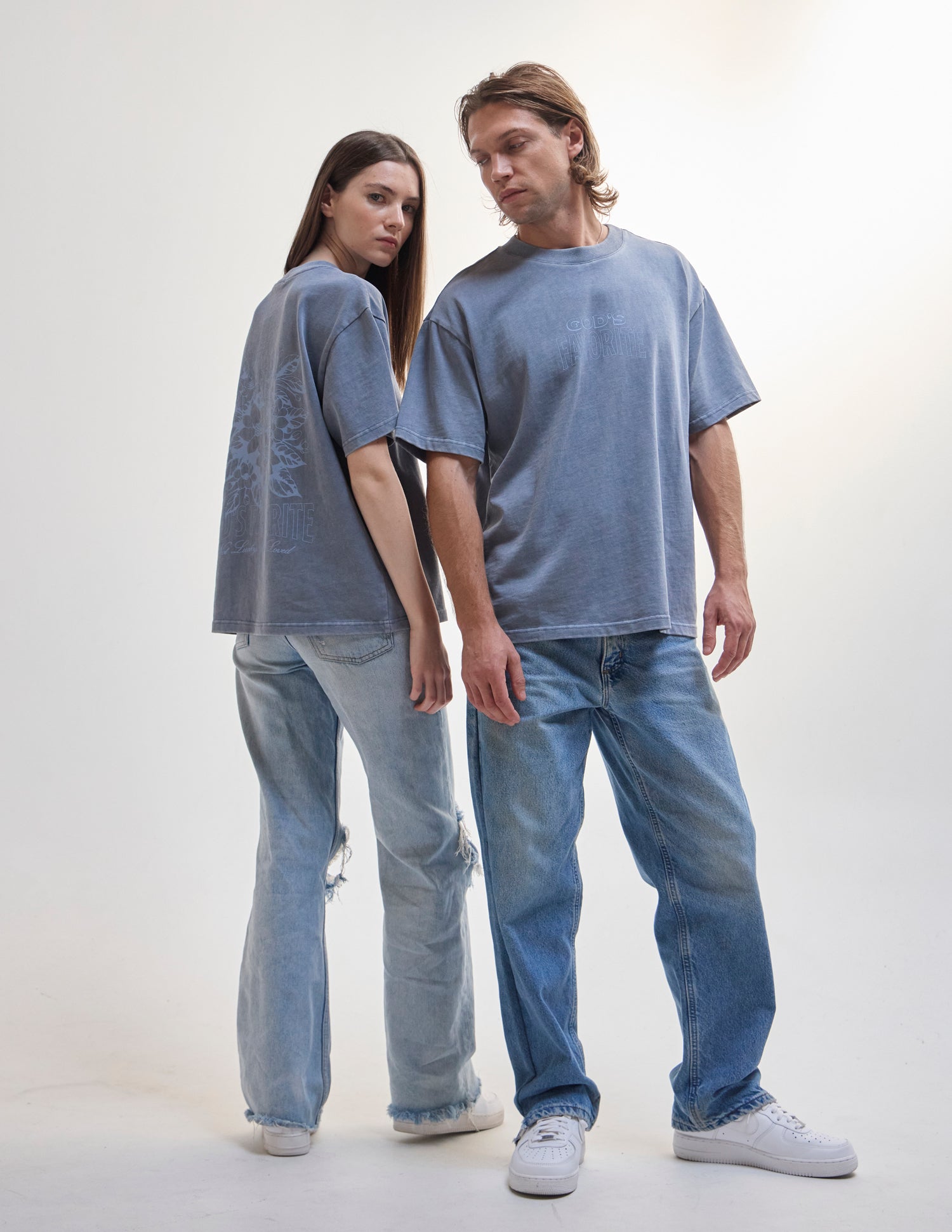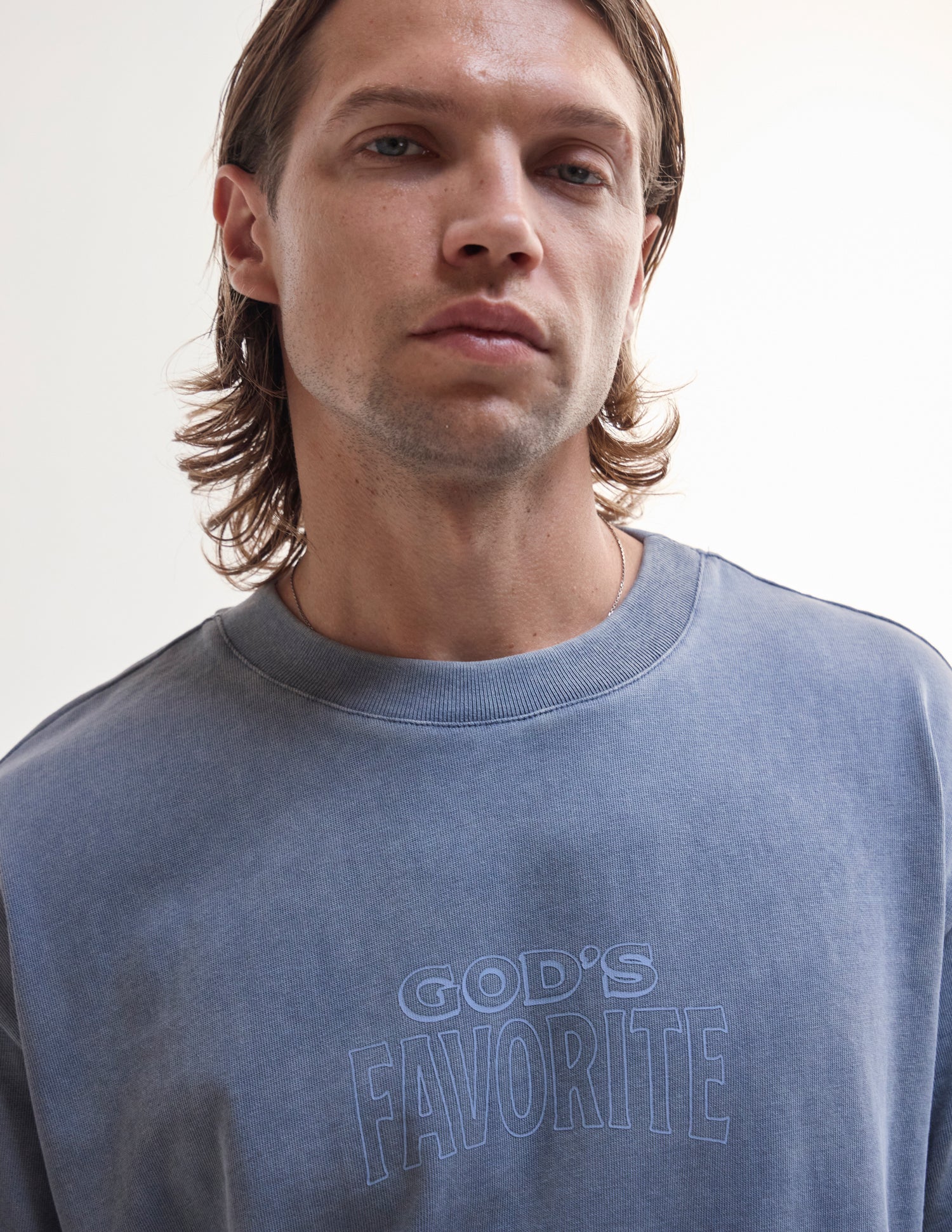 Our God's Favorite Heavyweight Tee in deep fjord. 100% premium combed cotton. 350gsm. God's Favorite front and back print.