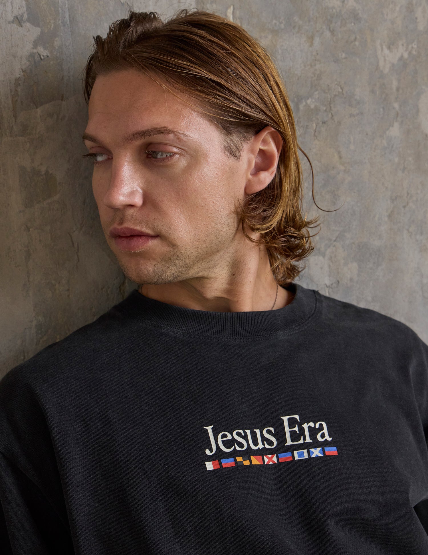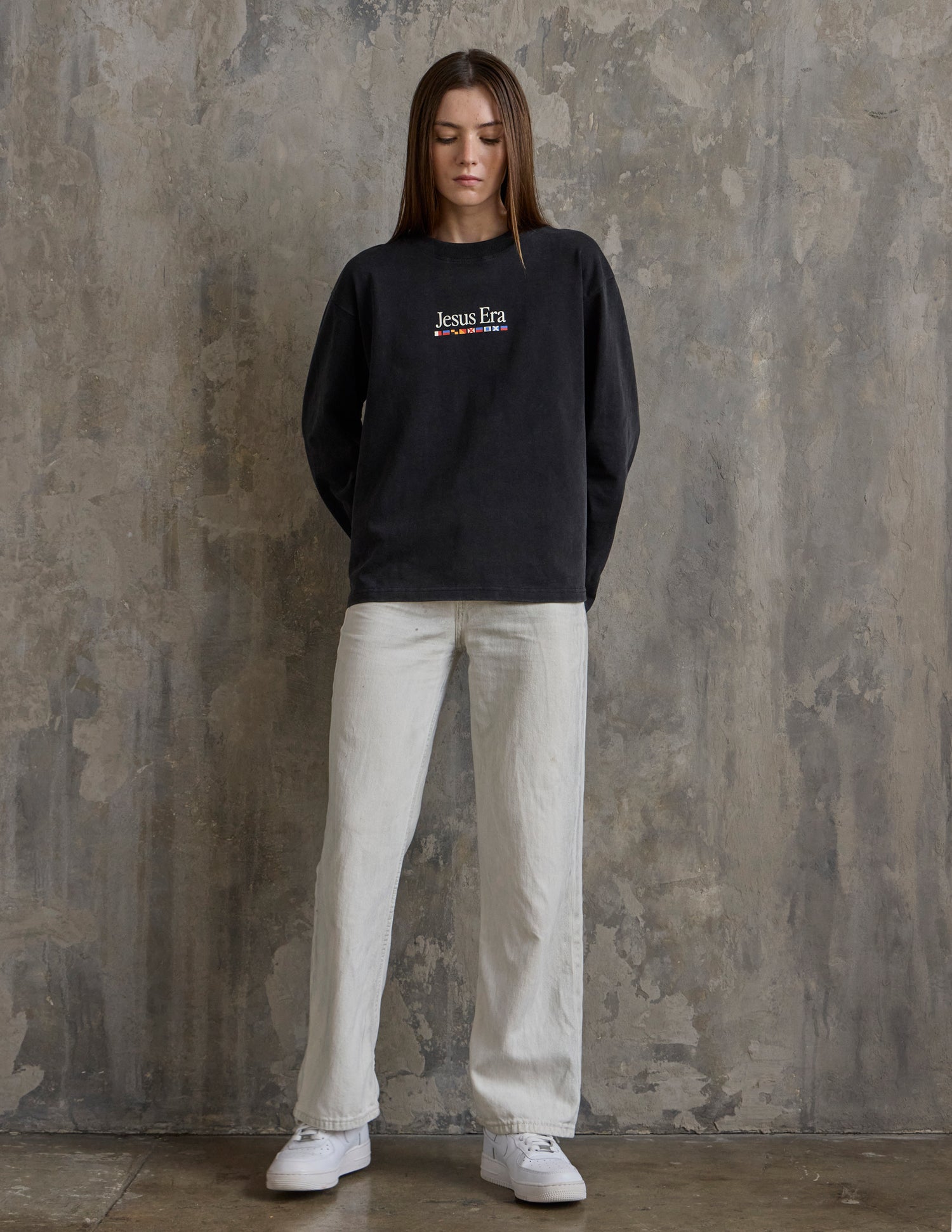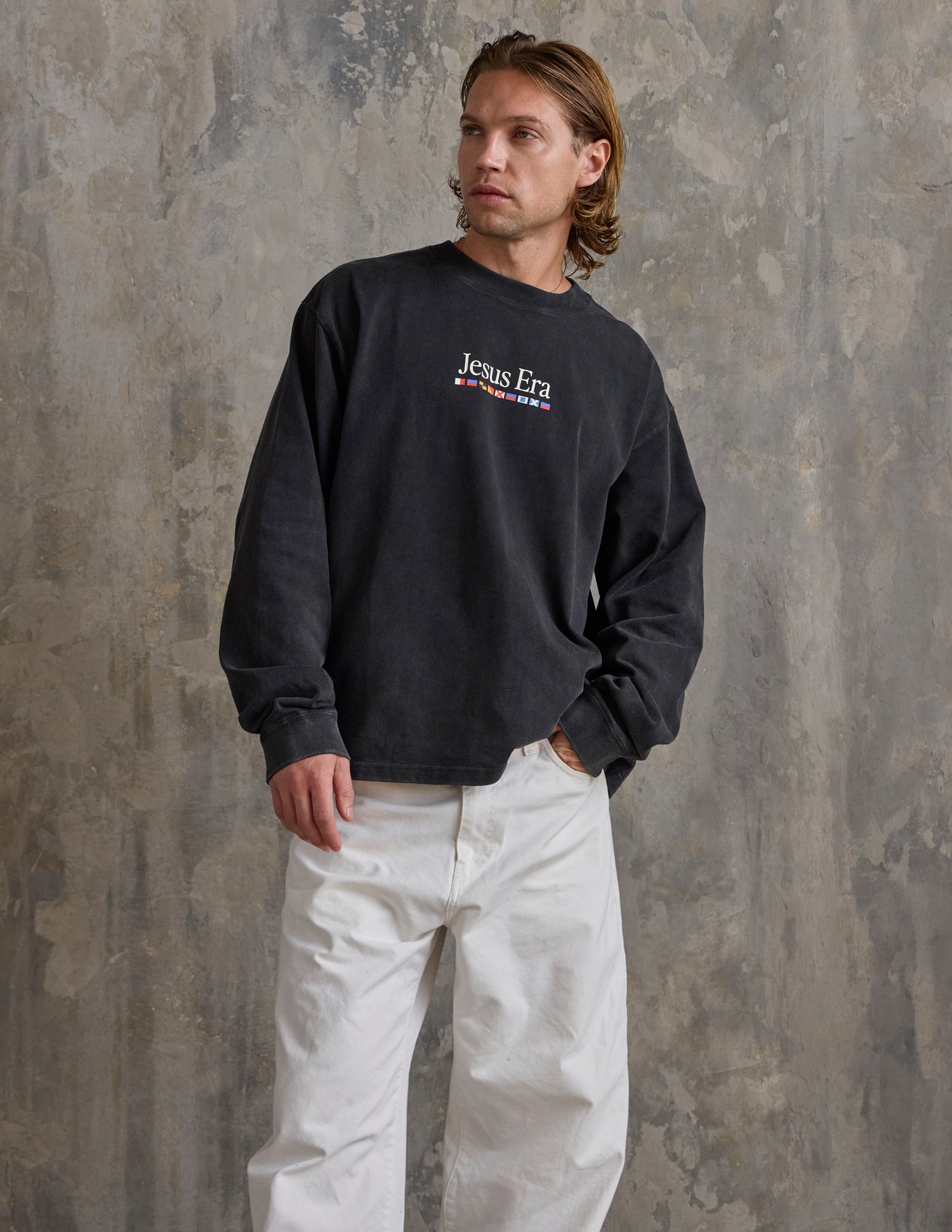 Our Jesus Era Long Sleeve Heavyweight Tee in nightfall. 100% premium combed cotton. 350gsm. Jesus Era front and back print.