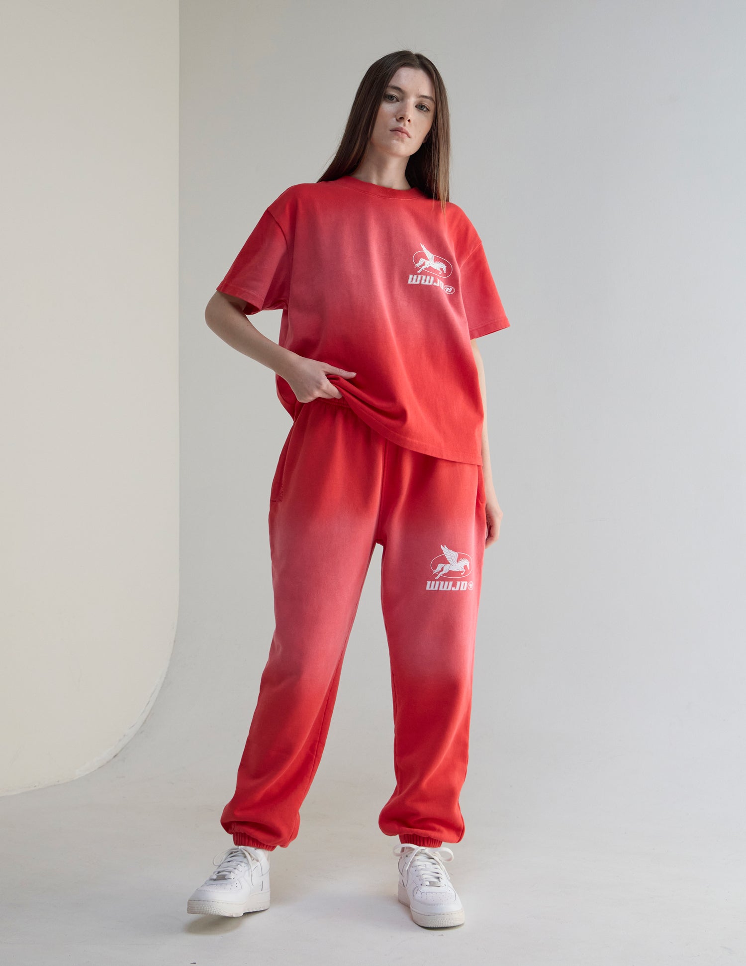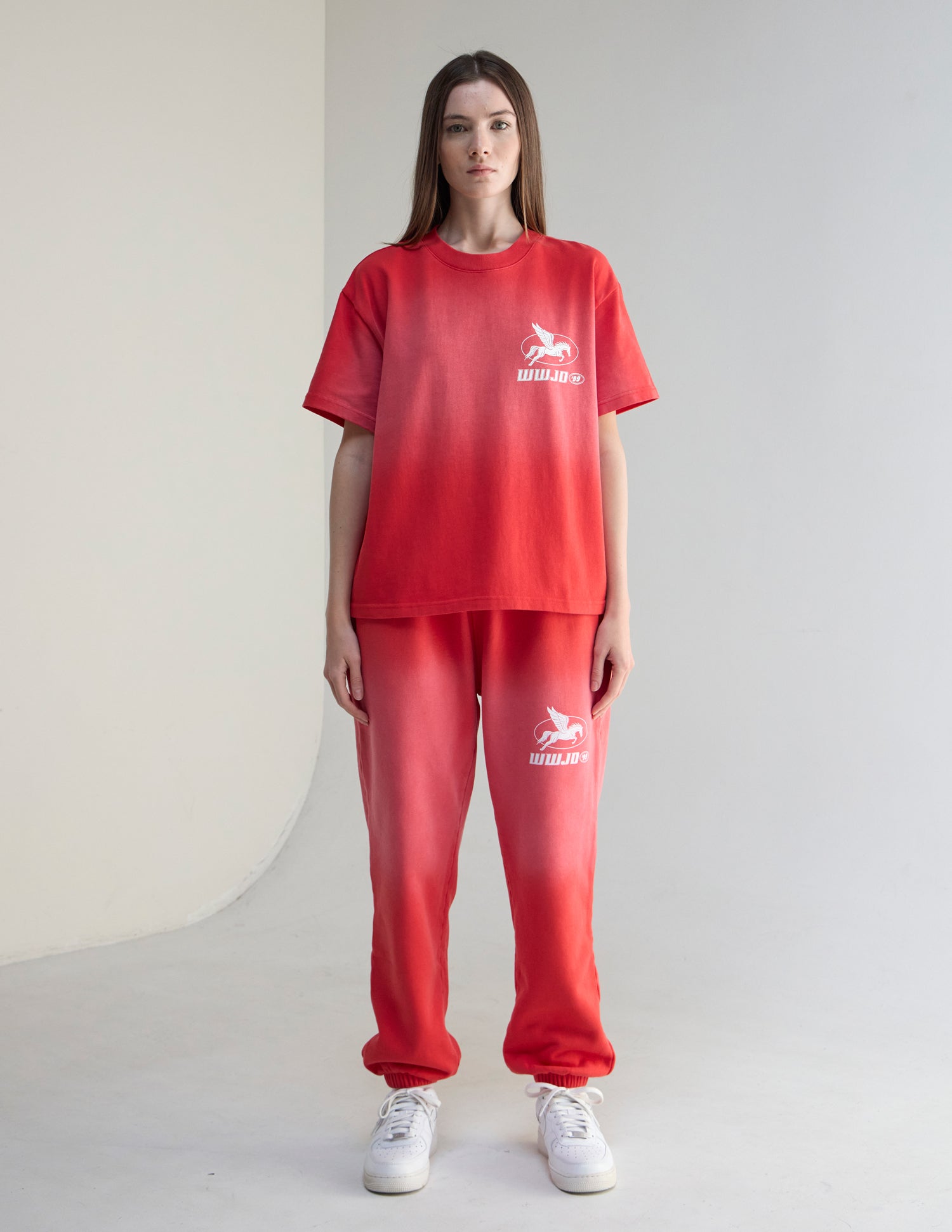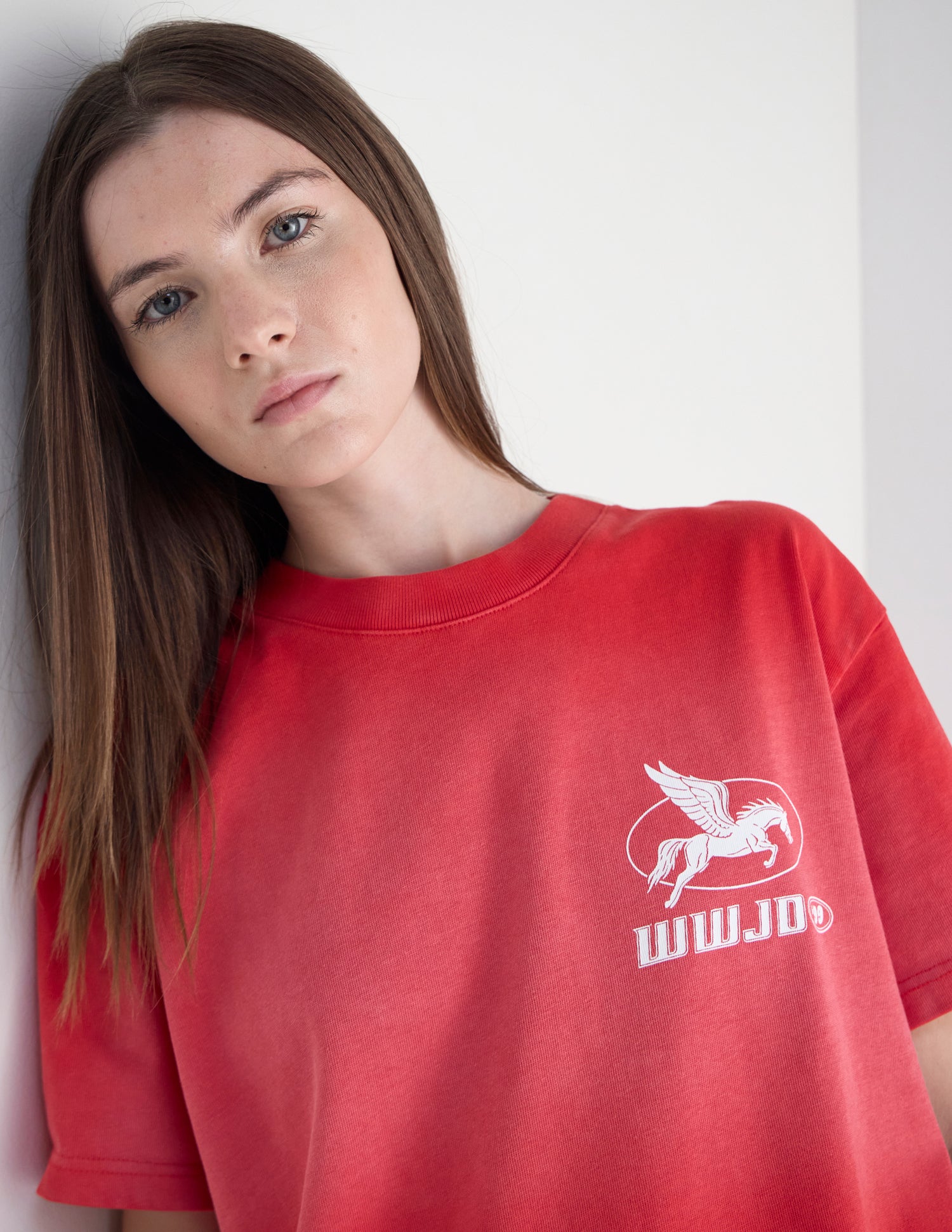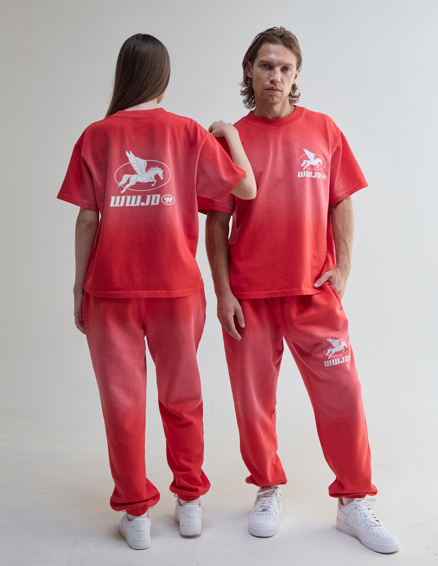 Our WWJD '99 Heavyweight Tee in coral clay. 100% premium combed cotton. 350gsm. WWJD '99 front and back print.