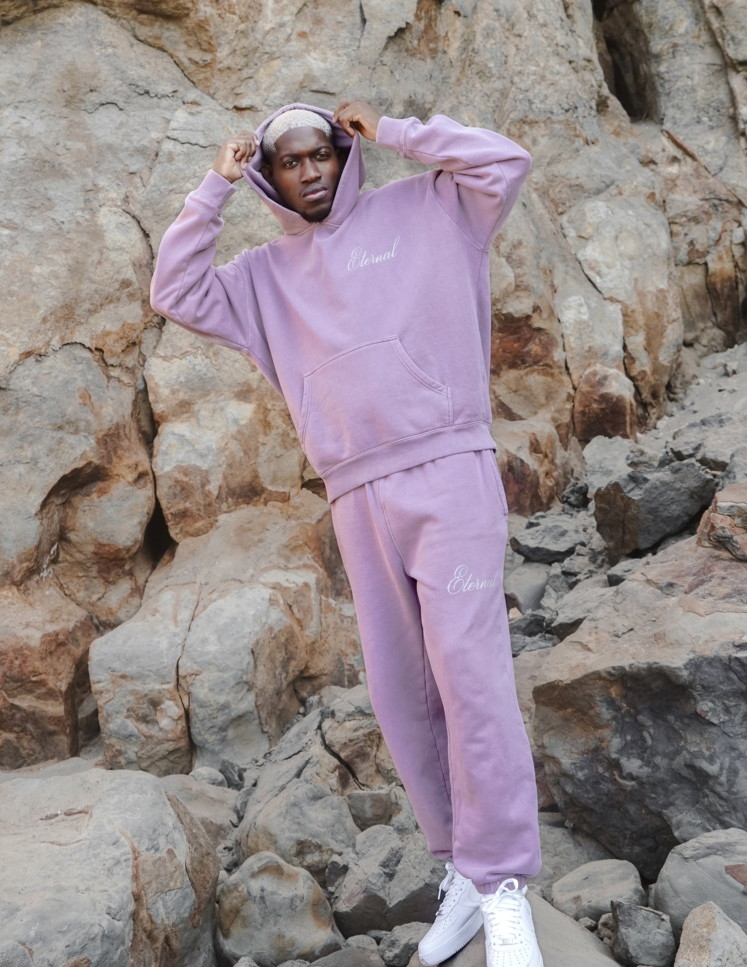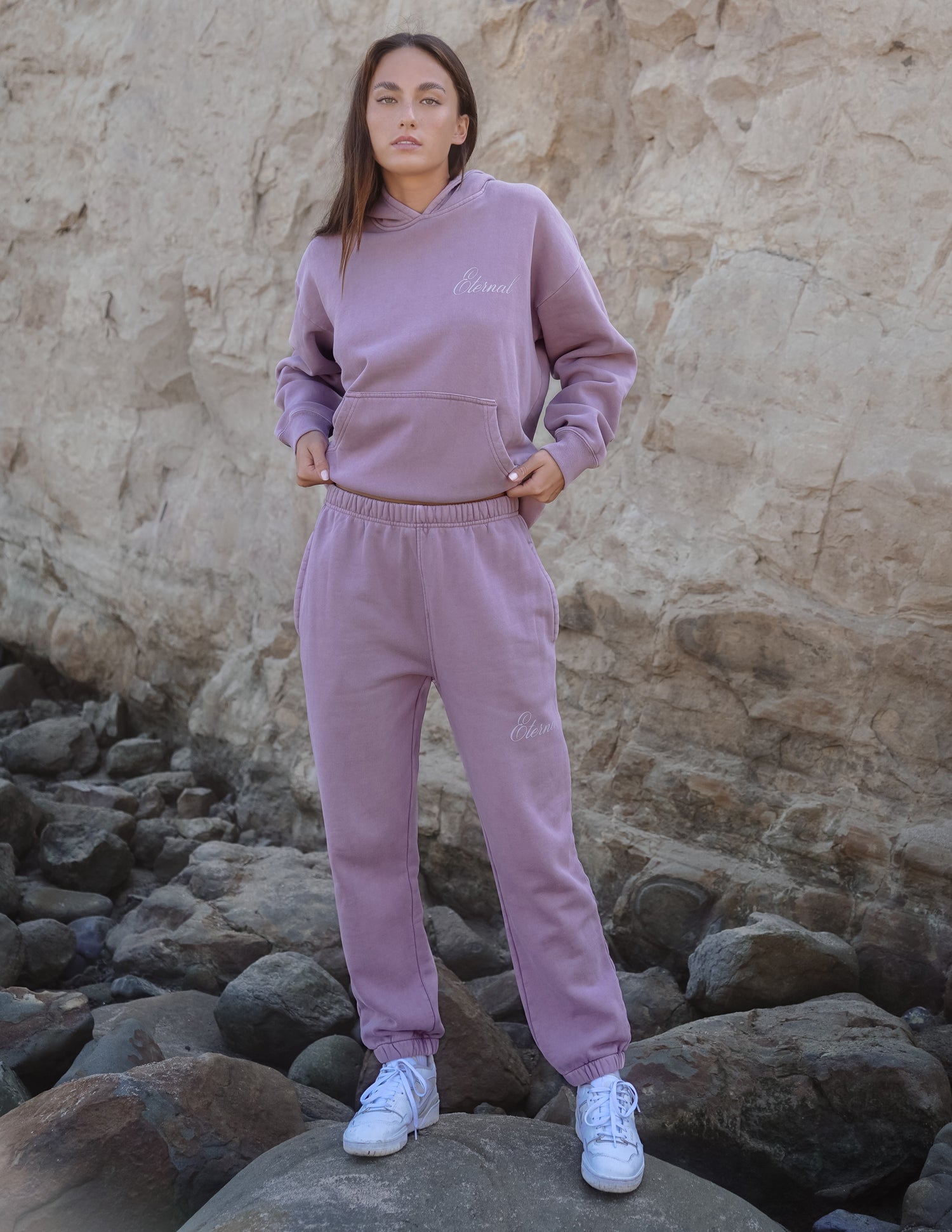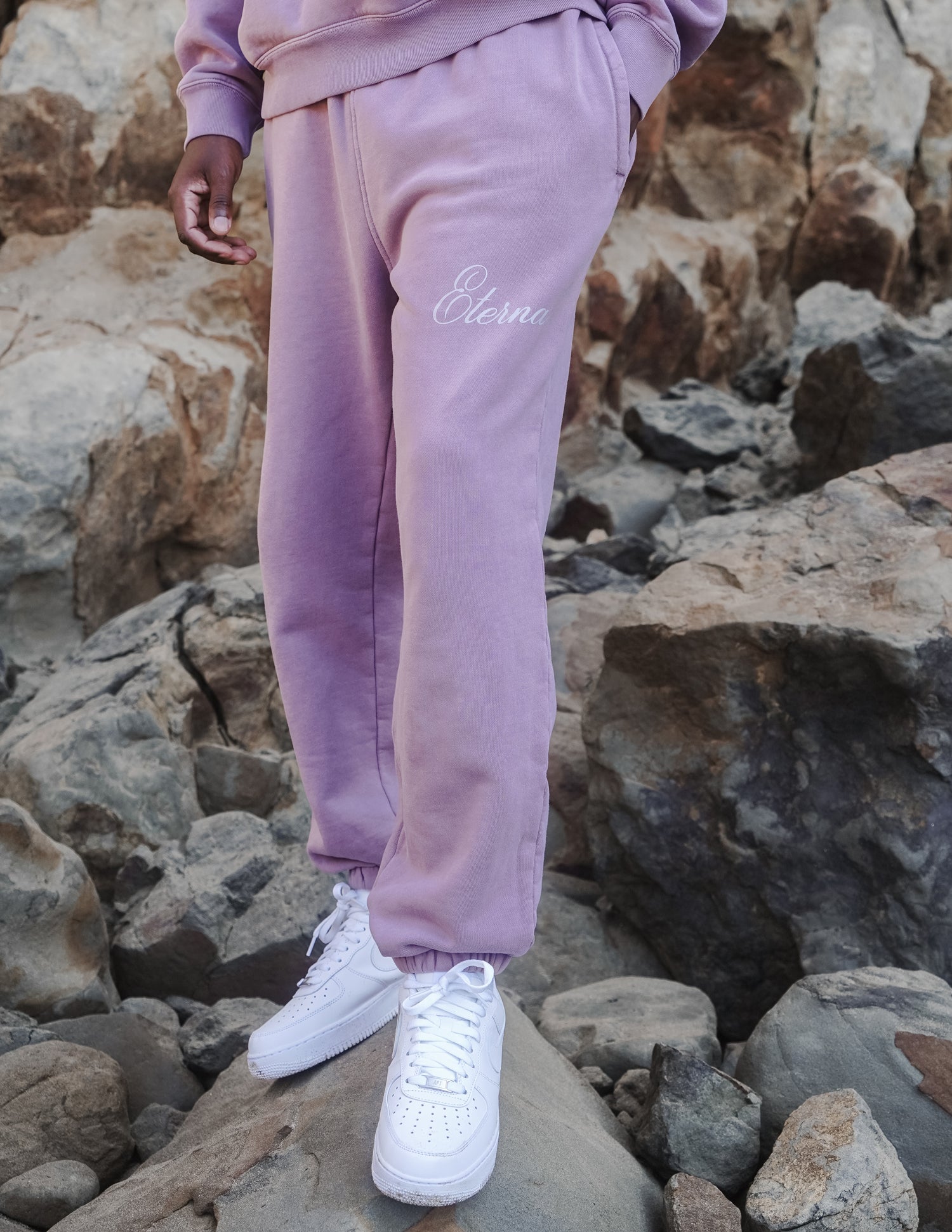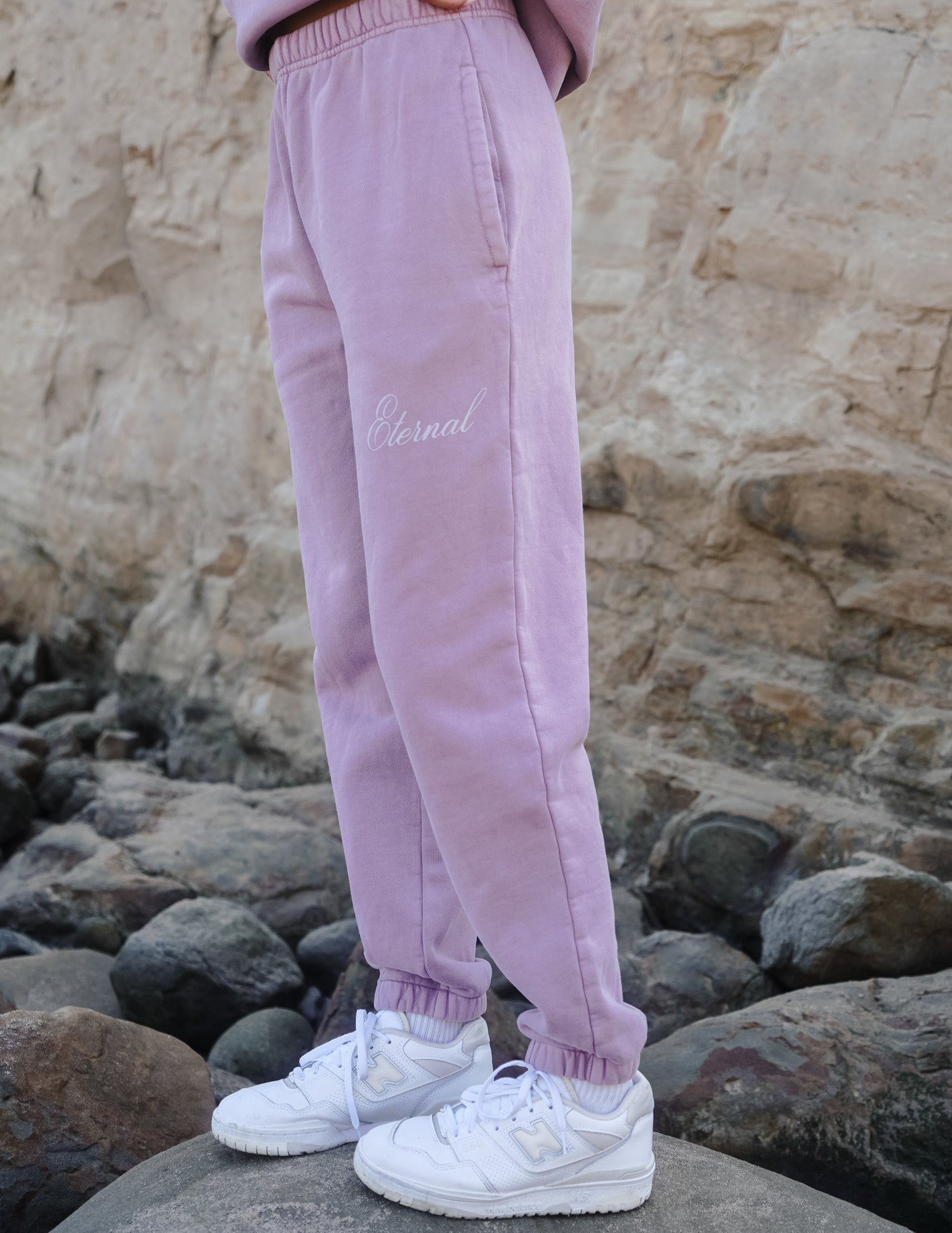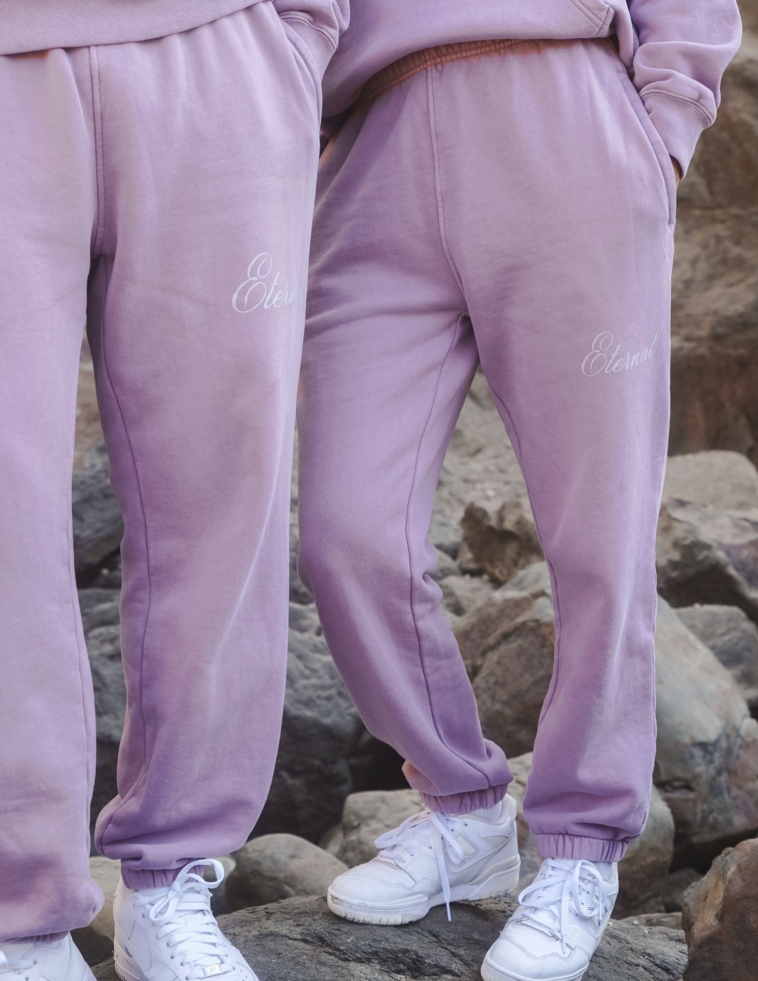 Our Eternal Sweatpant in verbena. 100% premium combed cotton. 420gsm. Eternal leg print. Hidden drawcords.