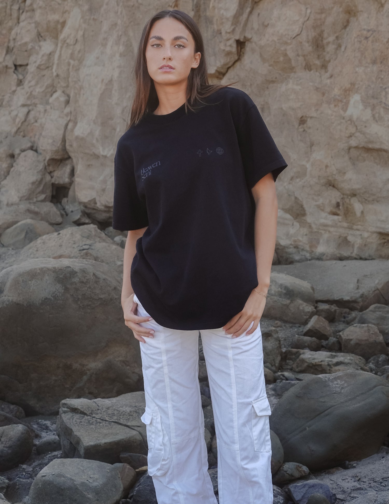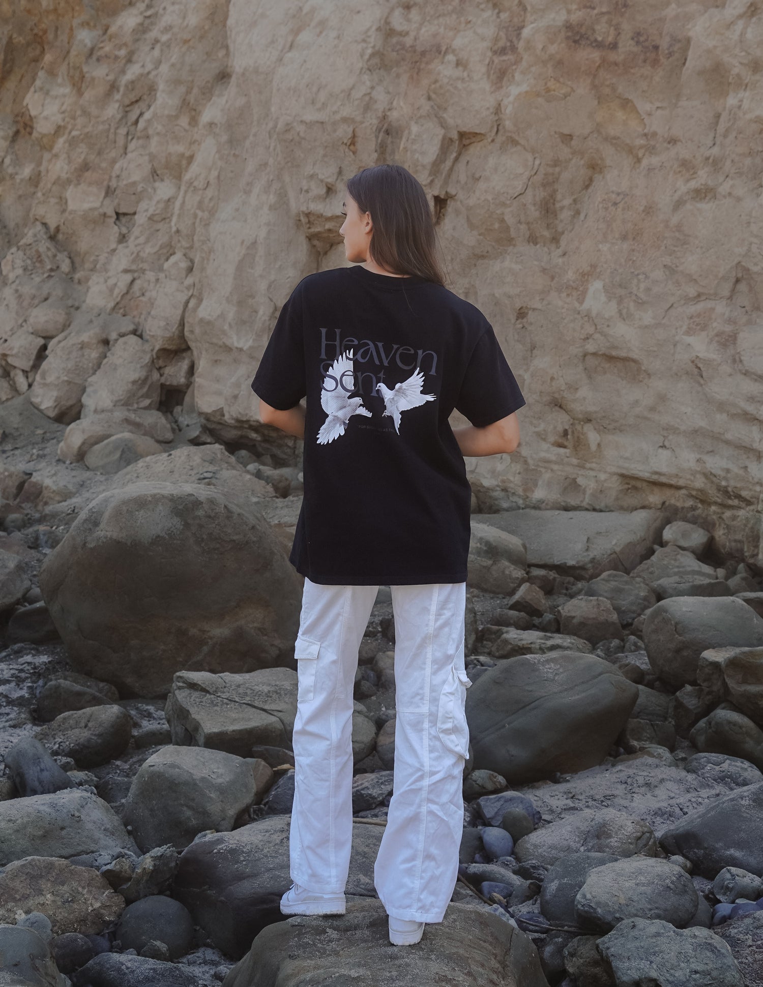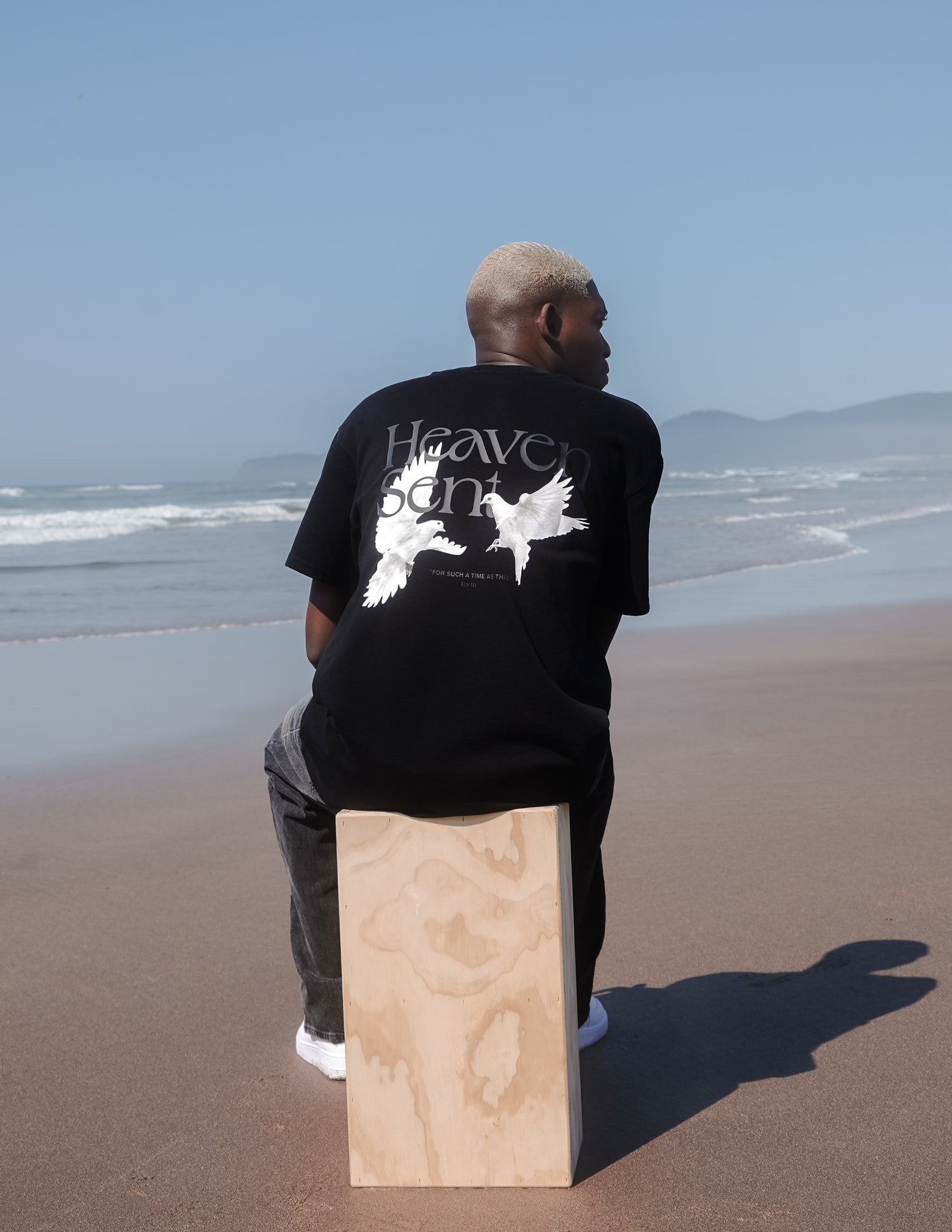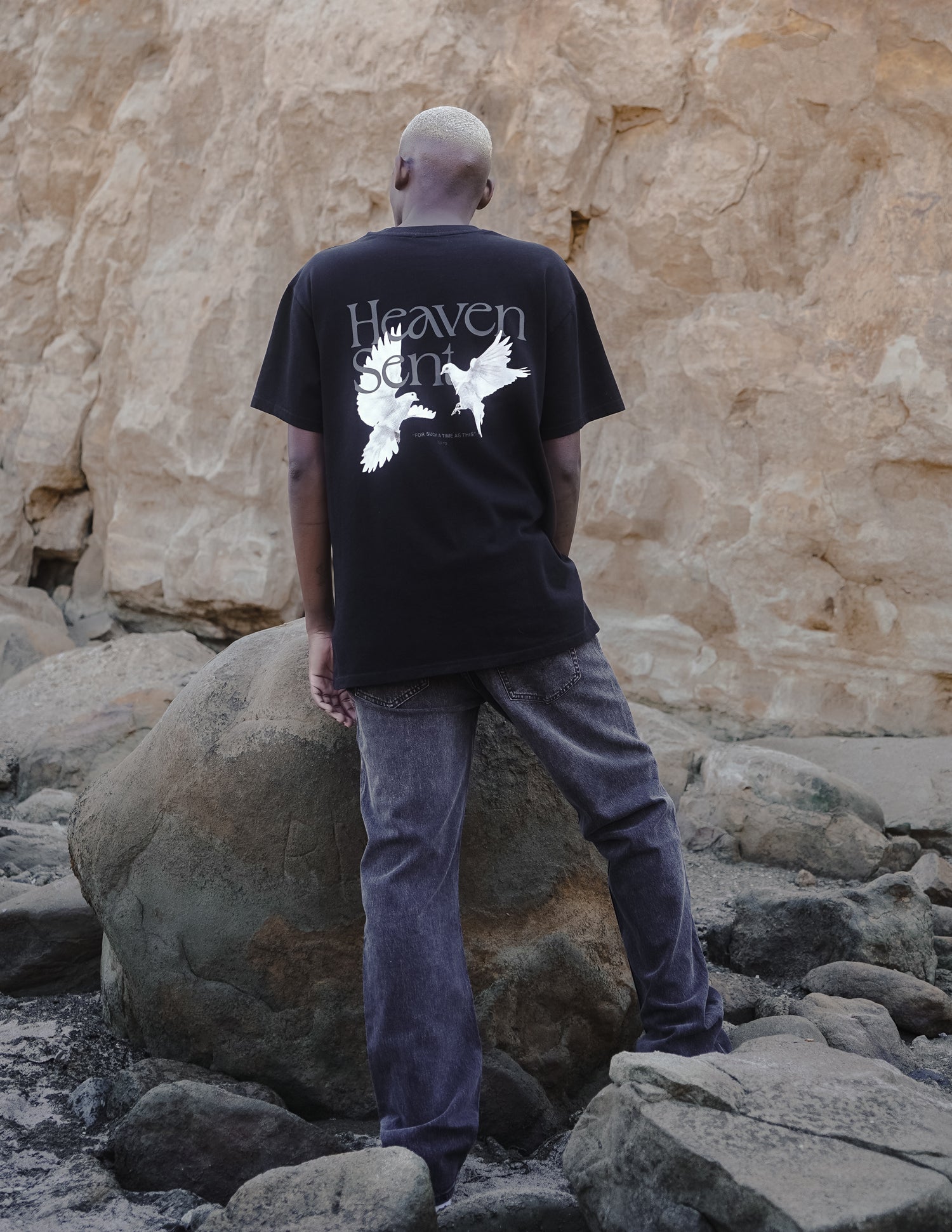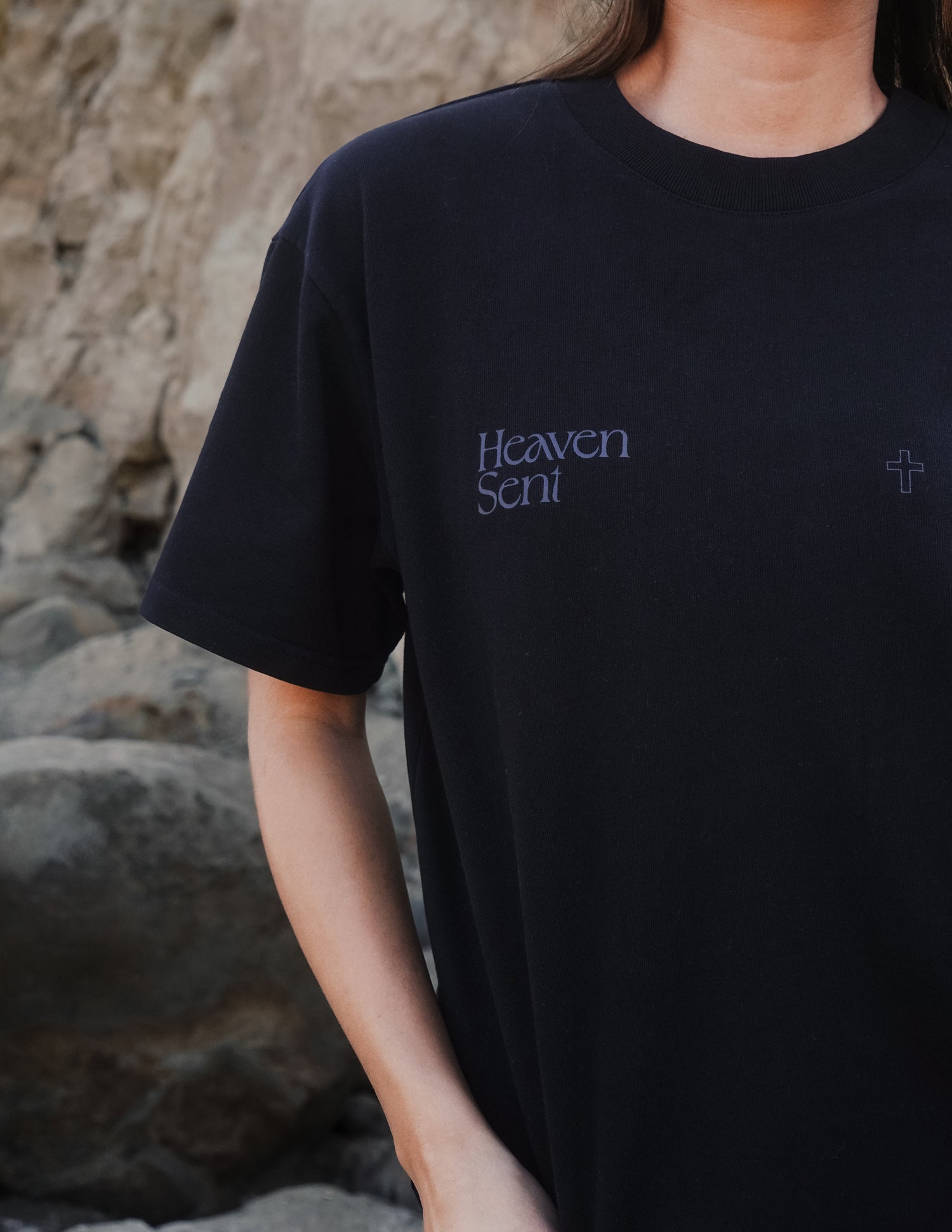 Our Heaven Sent Heavyweight Tee in nightfall. 100% premium combed cotton. 320gsm. Heaven Sent front and back print.